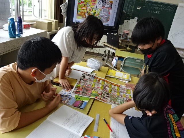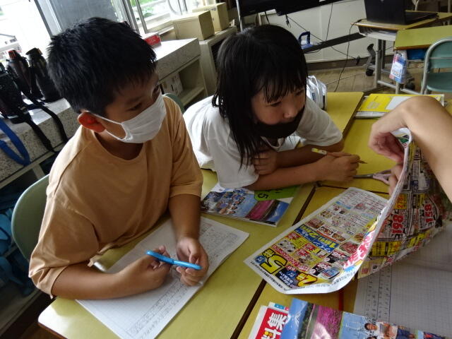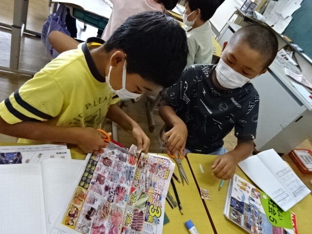 自分たちがためているものはどこから運ばれてくるのかをちらしをもとに調べました。