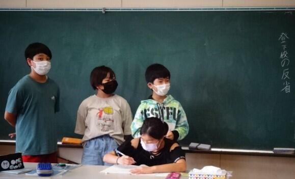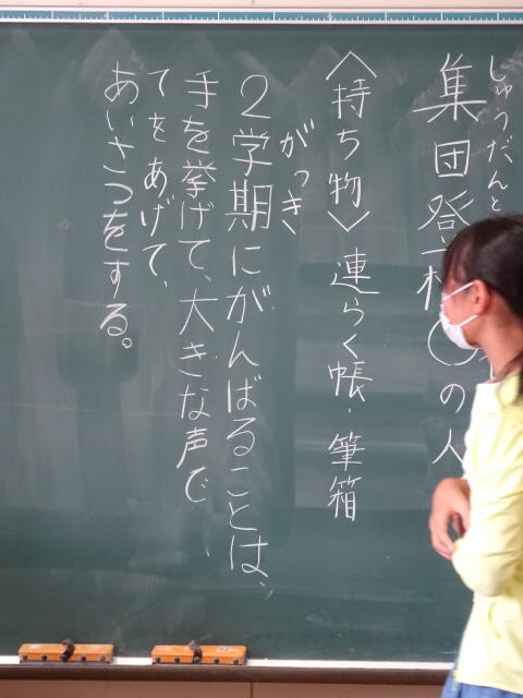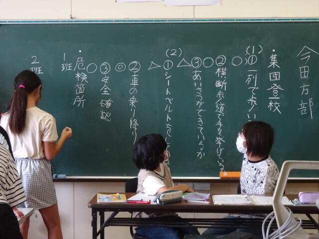 1学期の集団登校の様子を反省し、2学期にがんばることを決めました。