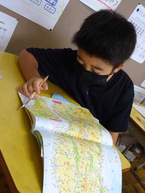 子どもたちは、「ふるさと相馬」や地図帳を見ながら調べました。
