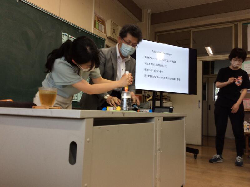 学校医の菜のはなこどもクリニック片寄雅彦先生をお招きし、教職員を対象に食物アレルギー研修を実施していただきました。緊急時にこどもたちの命を守れるよう食物アレルギーに関する講習やエピペンの実習を受けました。