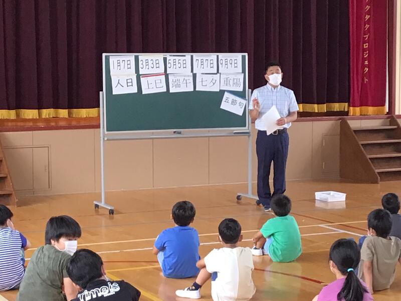 昨日、7月7日に七夕集会を行いました。はじめに教頭先生より、五節句についてお話がありました。