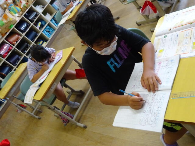 今日は、それぞれのペースで1学期の算数科の学習のまとめをしました。