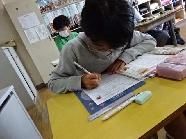 原稿用紙の使い方について確認をした後は、それぞれが感動したことについて作文を書きました。