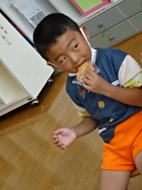 手を合わせて、みんなで「いただきます。」を言った後に、おいしくおやつを食べました。