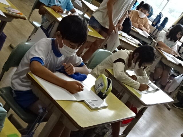 毎日の積み重ねで、教師とほぼ同時に書き終わる子どもたちも少しずつ増えてきました。