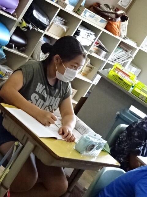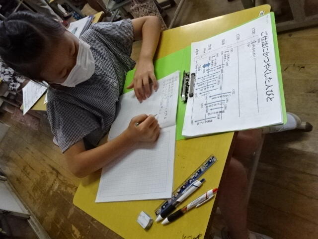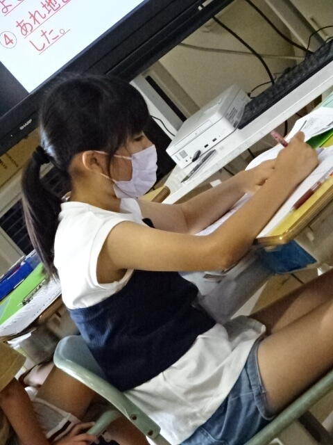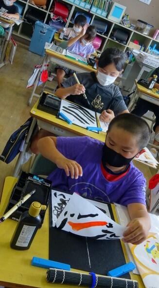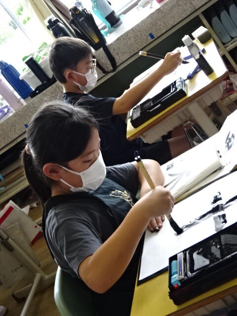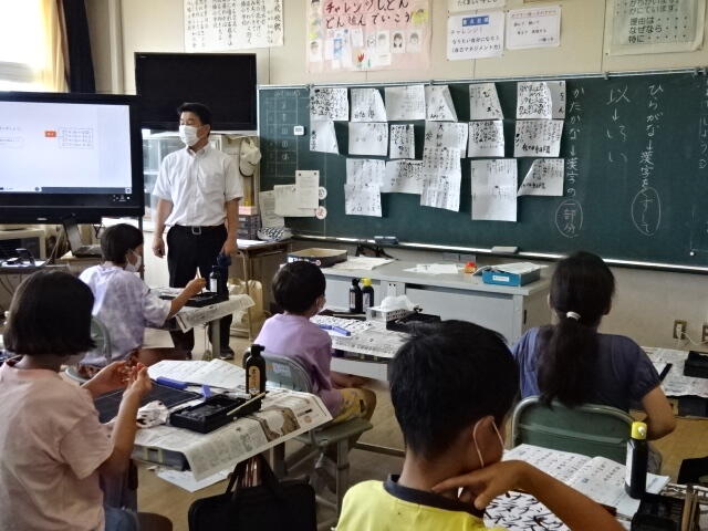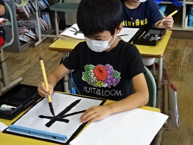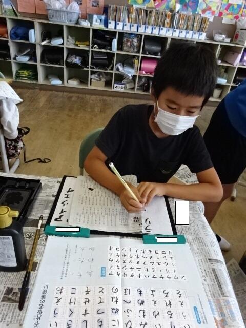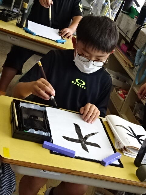 2022年7月1日 17時05分3年生の毛筆の学習の様子です。