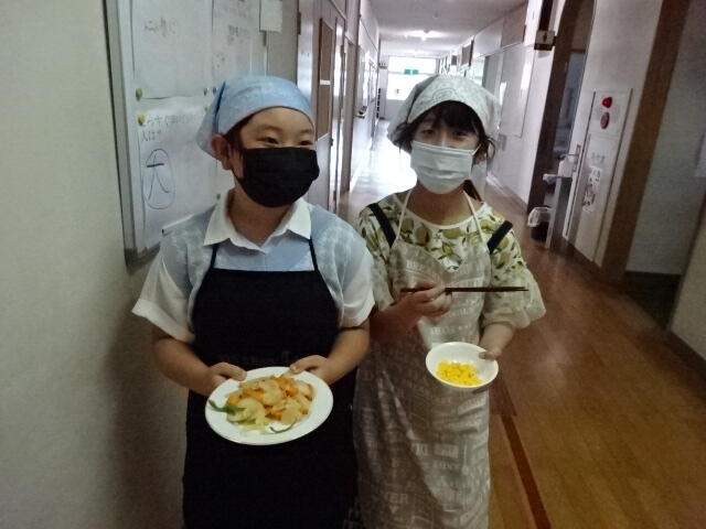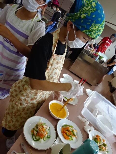 暑い中ですが、感染症対策をしながら協力して調理することができました。