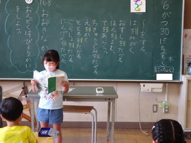 気持ちを込めて会話文を読むことができるようになった1年生の姿に成長を感じました。