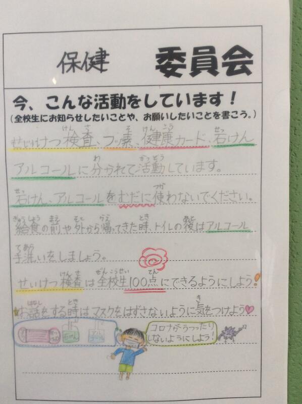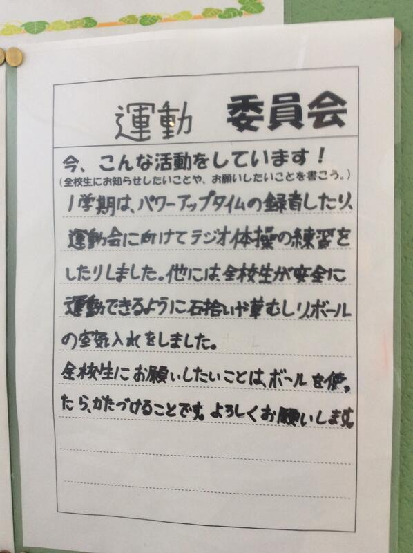 保健委員会は、イラスト入りで、お願いしたいことをとてもわかりやすく書いてあります。運動委員会は、どんな活動をしているかを具体的に書いてあります。委員会によって、書き方にも工夫が見られ、とてもいいですね。