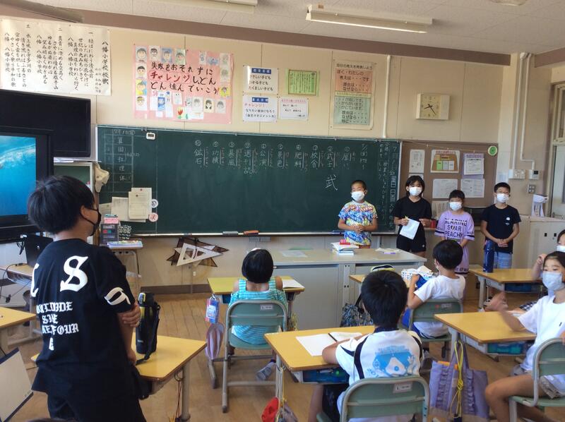 「家に帰ったら、どんなゲームをしますか」といった4年生の質問に、5年生は優しく答えていました。