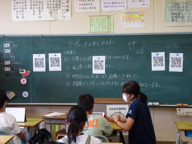 本日、5、6年生がリーディングスキルテストを行いました。リーディングスキルテストは、文章に書かれている意味を正確にとらえる力(基礎的な読む力)を測定するものです。6つのタイプから構成されており、それぞれのタイプで読解の能力値を診断します。初めて受けるテストでしたが、子どもたちは真剣に取り組みました。今回の結果を今後の指導に生かしていきます。