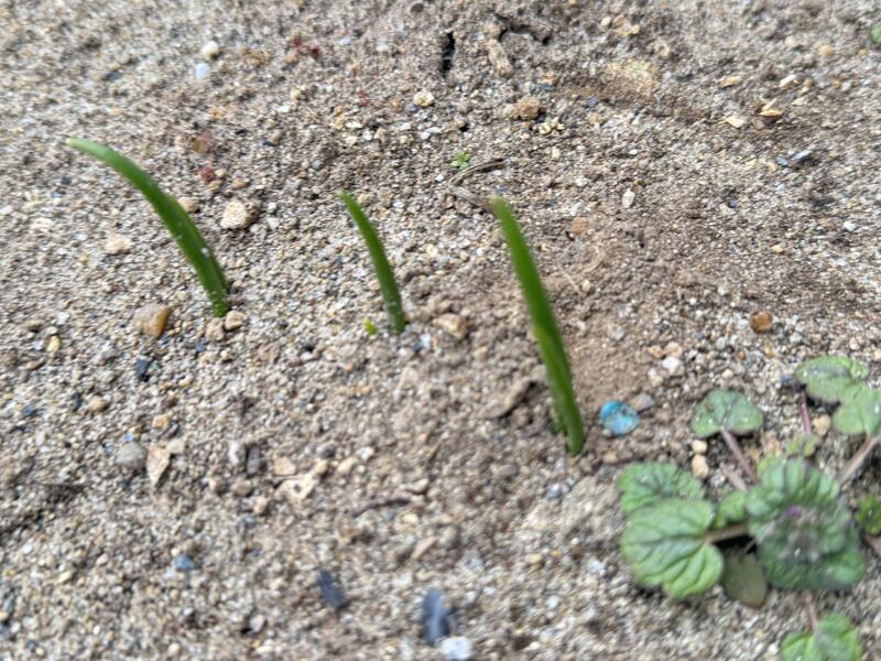 春に植えたチューリップの球根が残っていて、そこから芽が出たのでしょう。