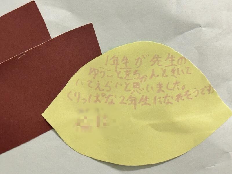 今週は葉っぱのカード、来週はりんご(思いやりんご)にするなど、2週間ごとにカードやテーマを変えながら取り組む予定です。