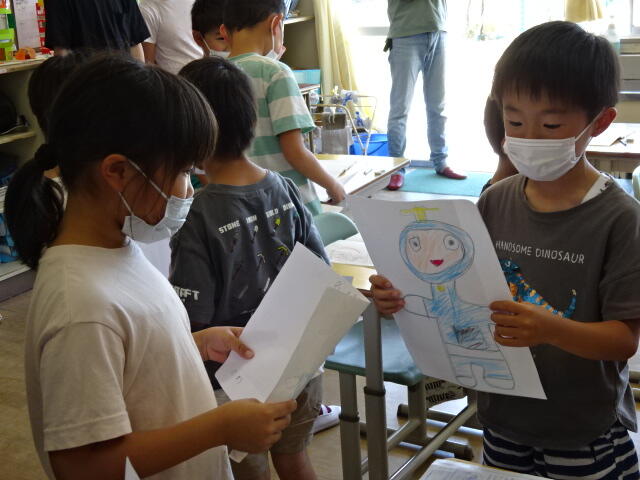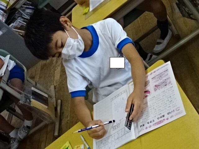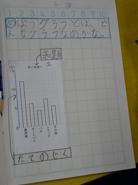 「表題」「たてのじく」などの言葉を一つ一つ確認しながら学習を進めています。