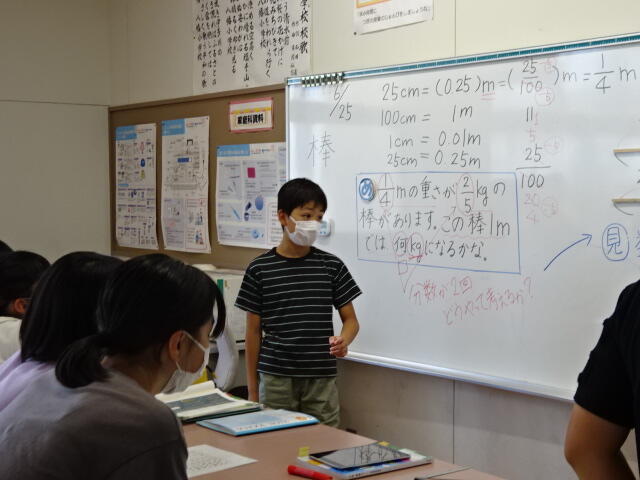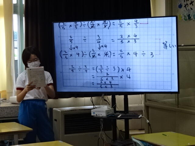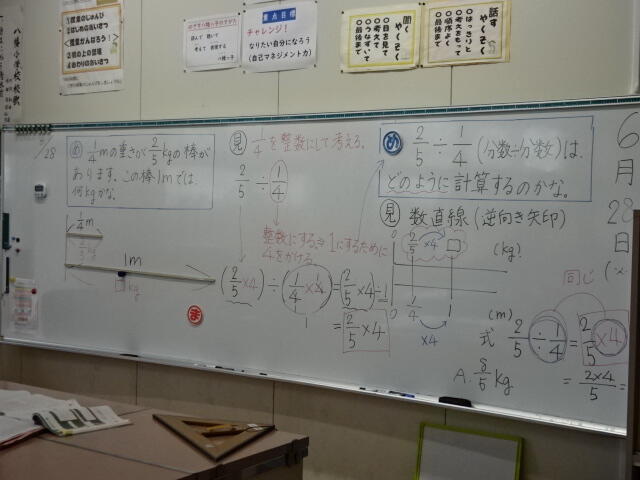 今日もコース別に分かれて、分数÷分数の計算の仕方を考えました。