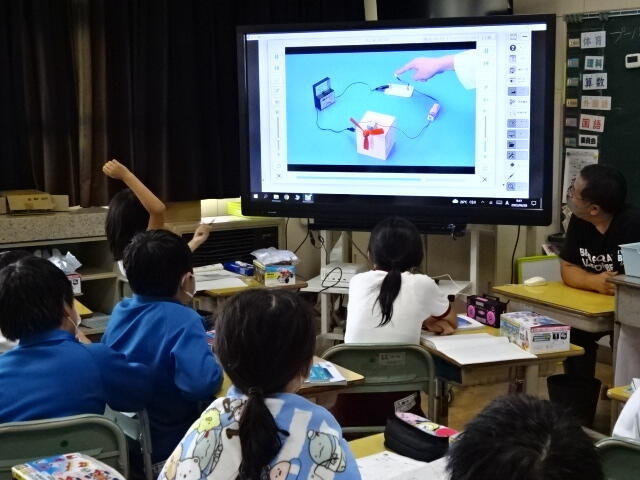 デジタル教科書を使って、電流の流れ方を確認しました。
