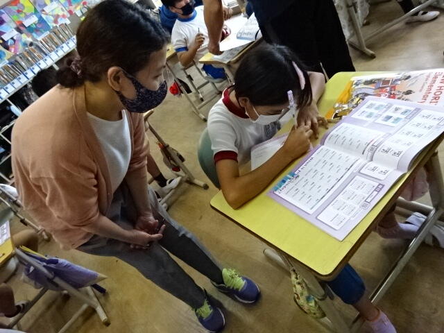 わからないことは、担任の先生、ALT、英語指導員の先生に聞きながら学習をしました。