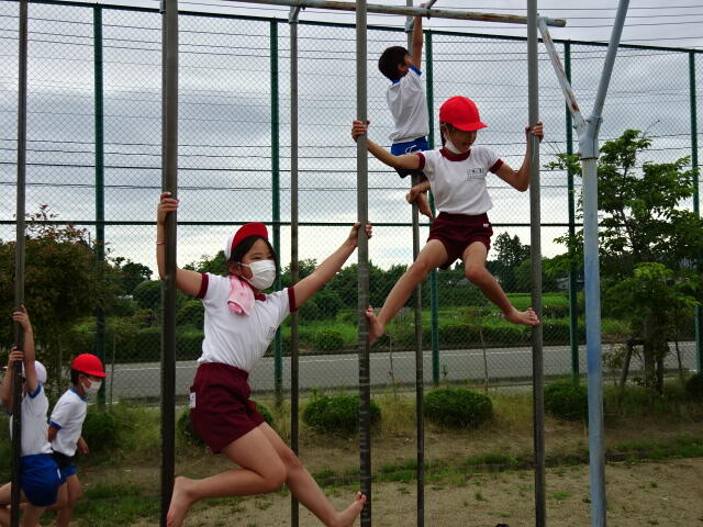 子どもたちは、遊具を使ったり、校庭を走ったりして体力づくりをしました。