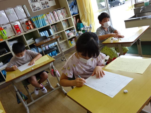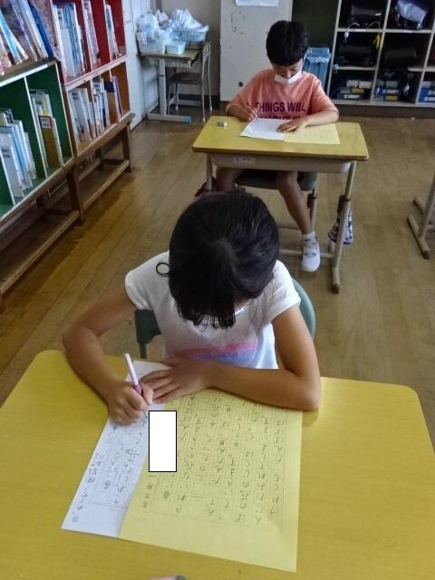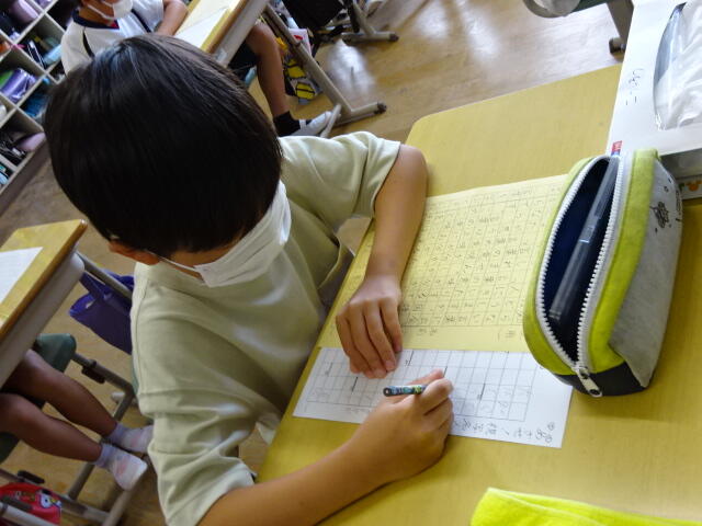 手本は教科書と同じように左に置く、縦書きの数字は漢数字で書く等も確認しました。