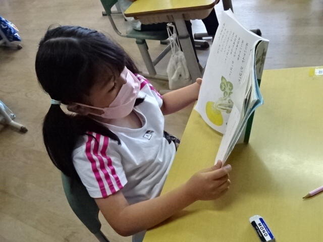 教科書の持ち方や姿勢にも気を付けて読んでいます。