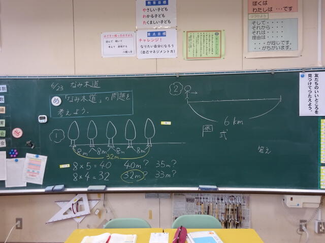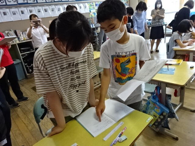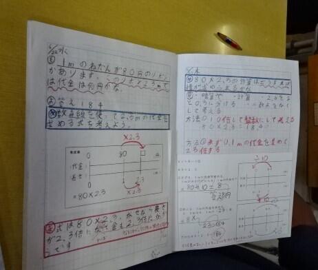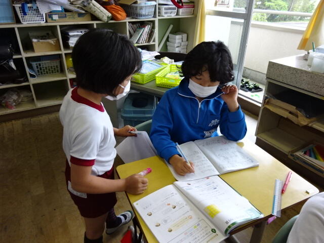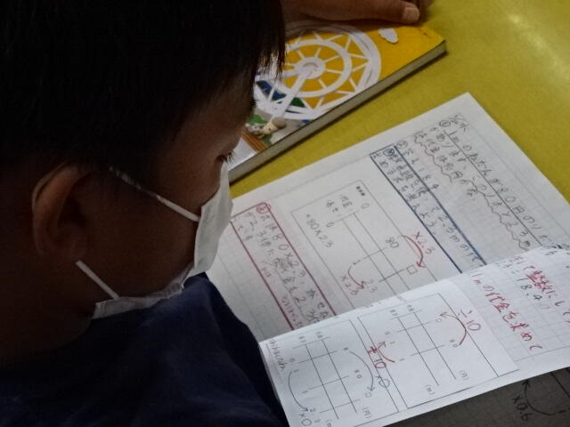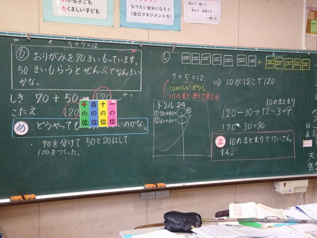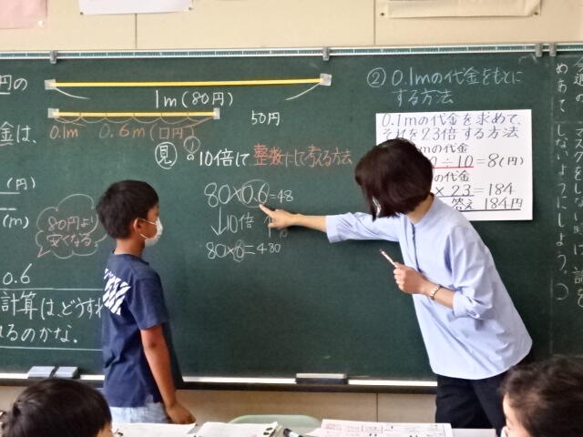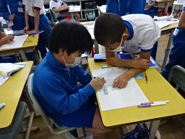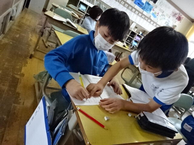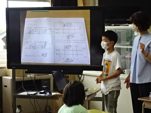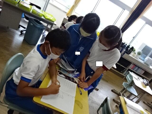 自分で考えた後は、友達どうしで交流。そして、学級全体で考え方を共有しました。