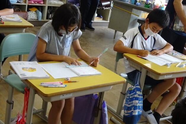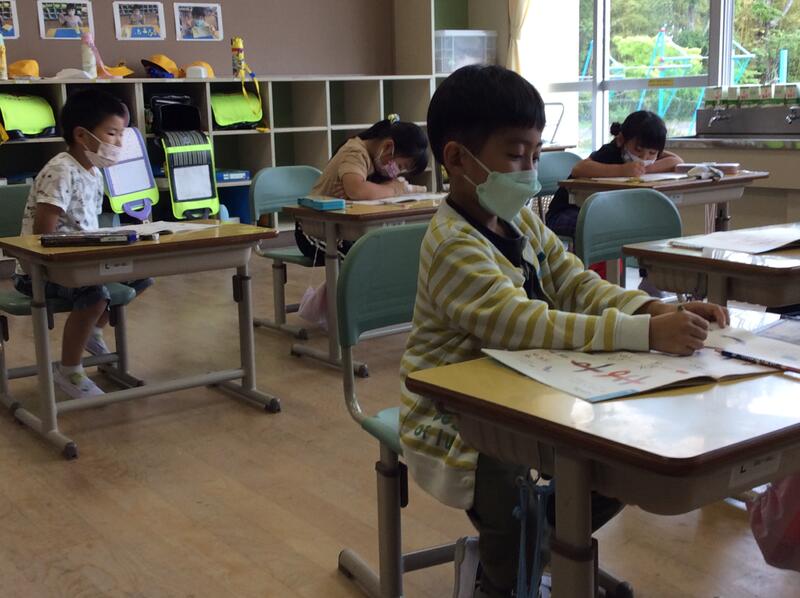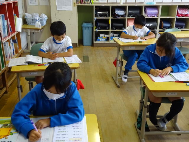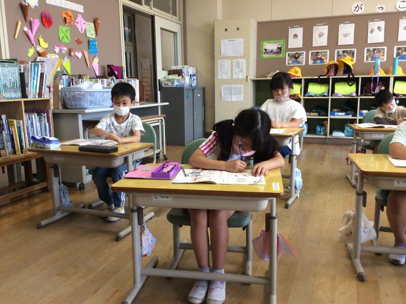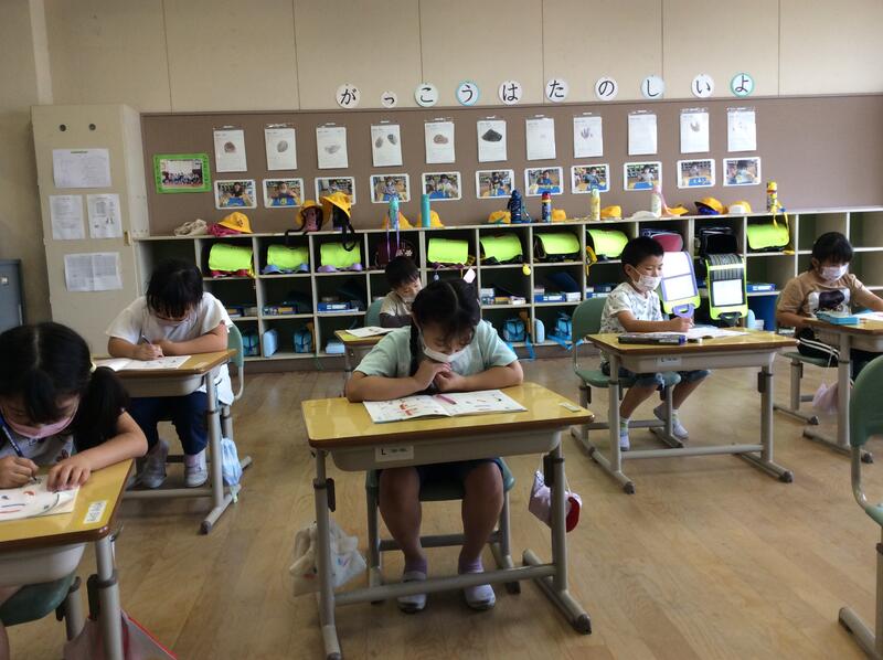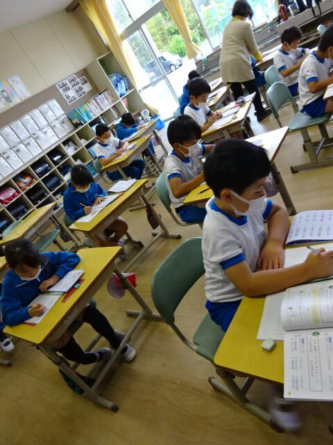 本日の1年生の書写の学習の様子です。先生の話をよく聞き、筆順に気をつけて、ひらがなの練習をすることができました。