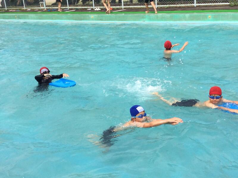 本日の5校時目、3年生と4年生の水泳学習の様子です。3つのコースに分かれて練習しました。けのびを練習するコース、ばた足を練習するコース、どんどん泳ぐコースです。