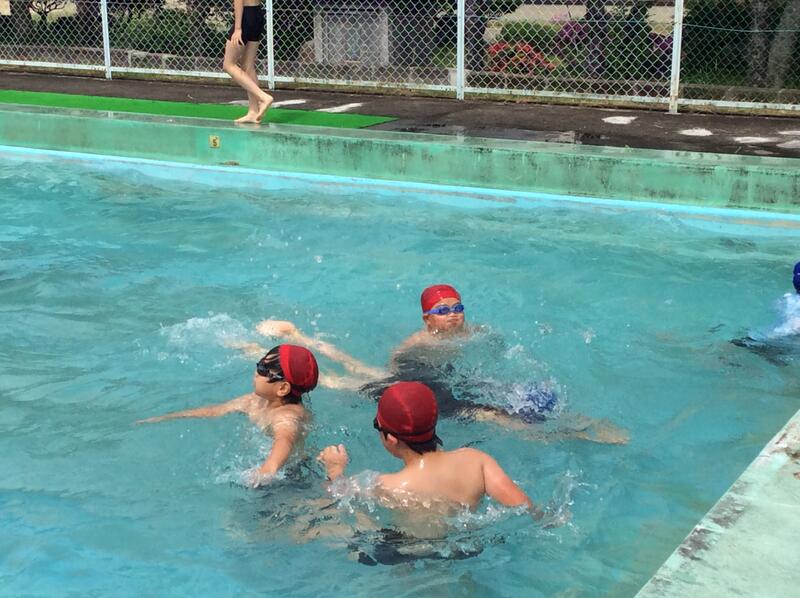 今日は、気温も上がり、気持ちよさそうに泳ぎの練習をしていました。自分の水泳の目標に向かって、ファイト、八幡っ子!