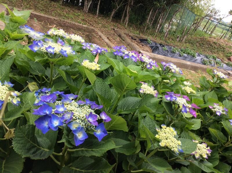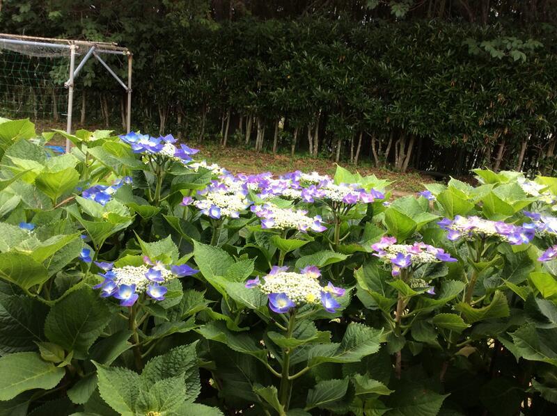 体育館に行く通路に沿って、きれいなあじさいが咲きました。心を潤してくれます。