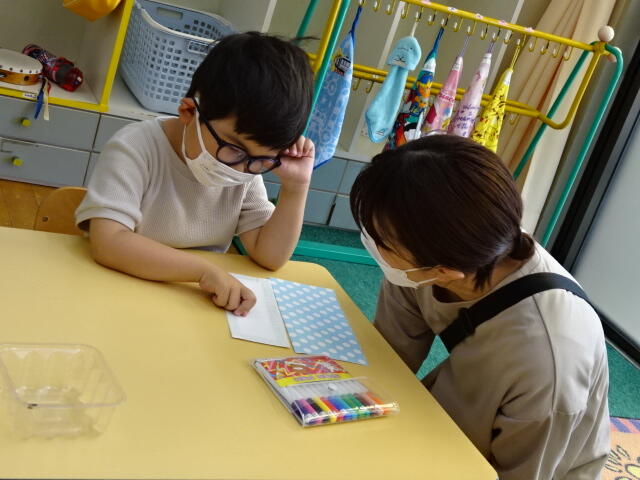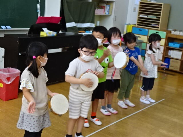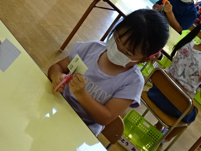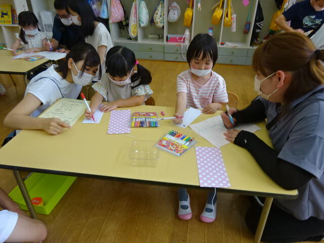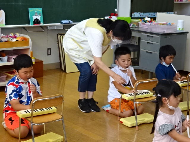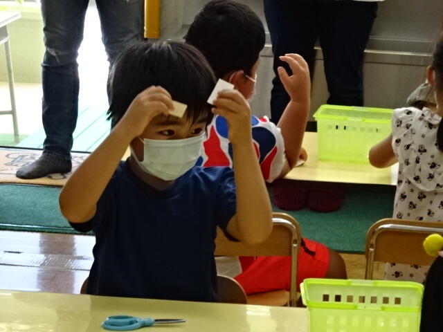 年少組は「たなばら製作・楽器遊び」、年長組は「動く船づくり・鍵盤ハーモニカの演奏」をしました。