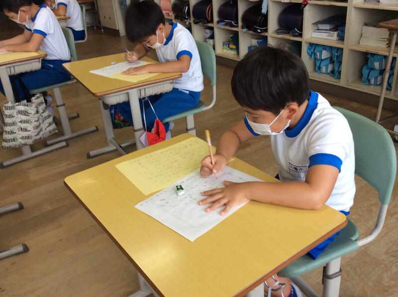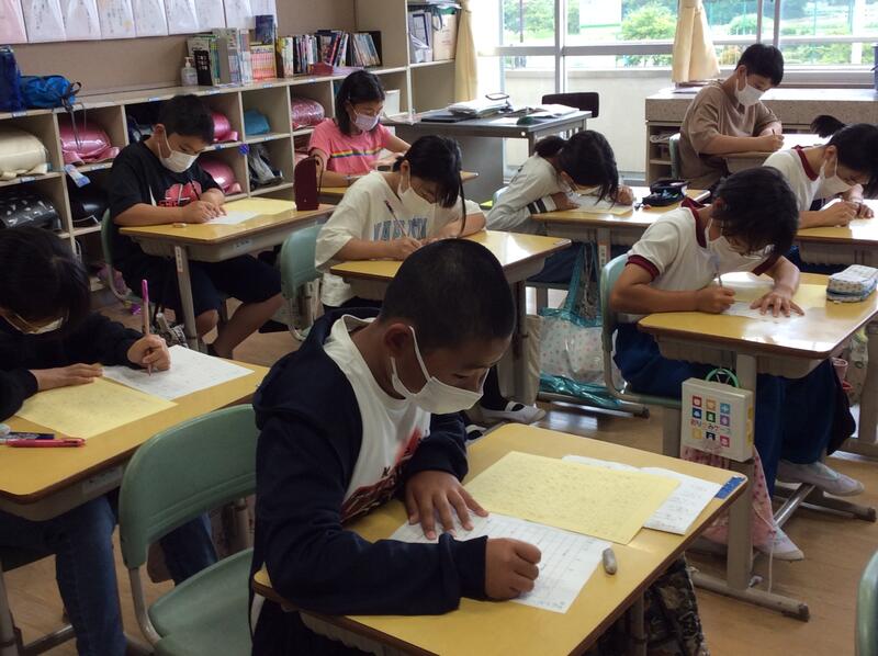 各学年の手本を見て、3分間で視写します。視写することで、文章を正しく理解したり、書いたりする力を高めていきたいと思います。