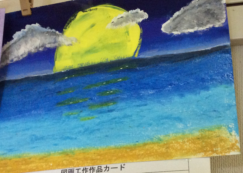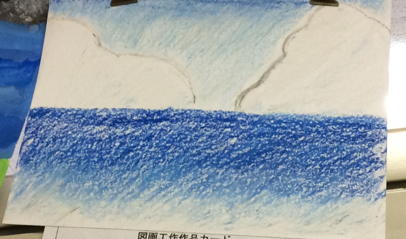 子どもたちの作品を見ると、描いた空の場所も、時間帯も、空の様子、空の描き方も、人それぞれです。すばらしい感性をもっているなぁと、しみじみ思いました。ぜひ授業参観の時に、ゆっくり作品をご覧ください。
