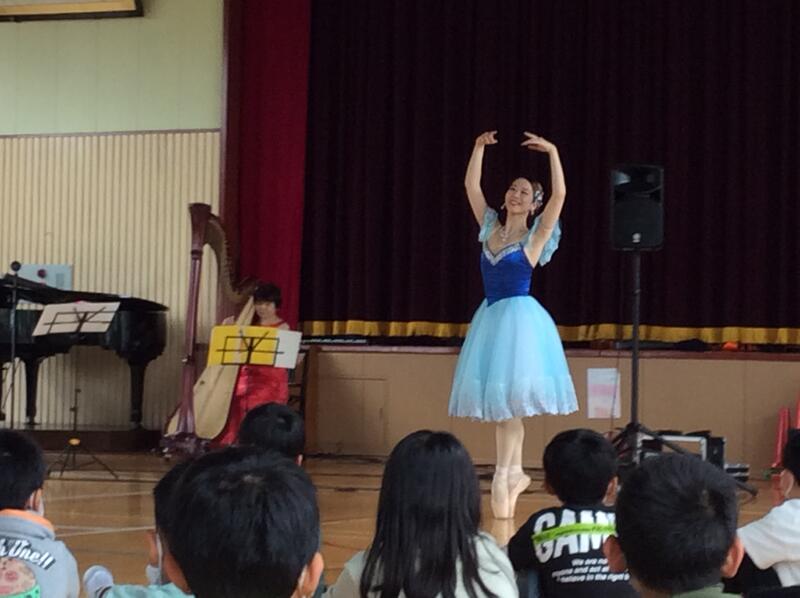 本日の3~4校時は、鑑賞教室でした。「長谷川ファミリー」による演奏会でした。途中で、バレリーナも登場しました。