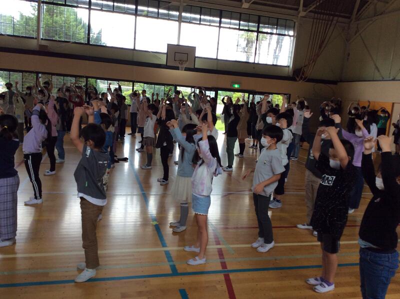 今日のパワーアップタイムの様子です。持久力アップのために、低学年はトラック外での活動を、中学年は体育館で運動身体づくりプログラムを、高学年は3分間走をしました。