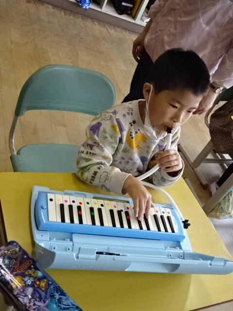 鍵盤ハーモニカの演奏を聴かせてもらったり、正しい演奏の仕方について教えてもらったりしました。