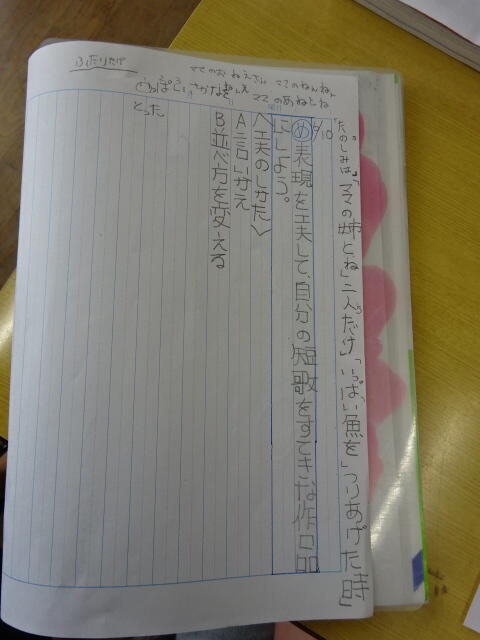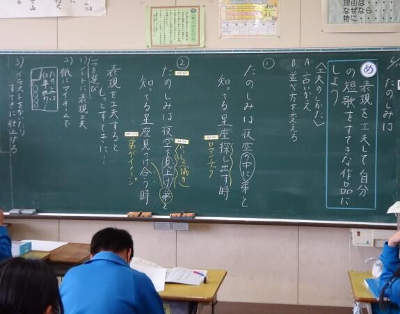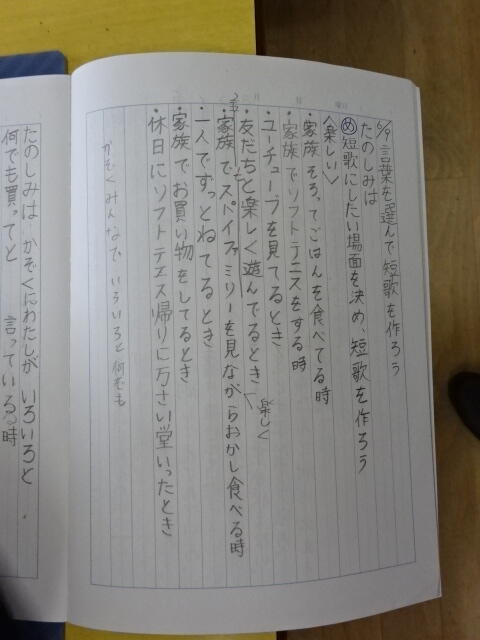 子どもたちは、自分たちが経験した楽しかったことを思い出して、それぞれに短歌づくりをしました。