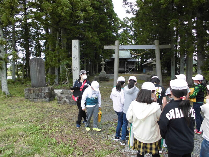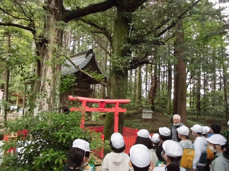相馬市の特別講師の先生にガイドしていただきながら、八幡地区のひみつを探ったり、神社の参拝の仕方について学んだりすることができました。とても有意義な見学学習になりました。