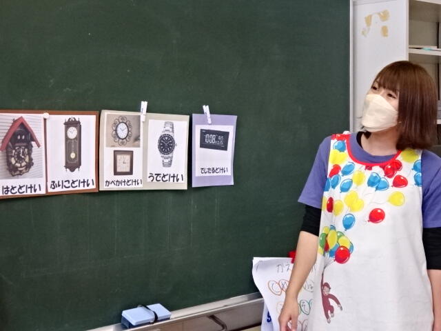まず、時計にはどんな種類があるのかを先生と一緒に考えました。