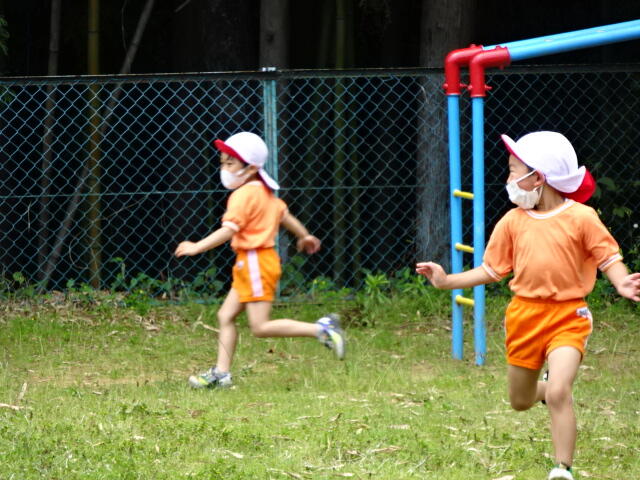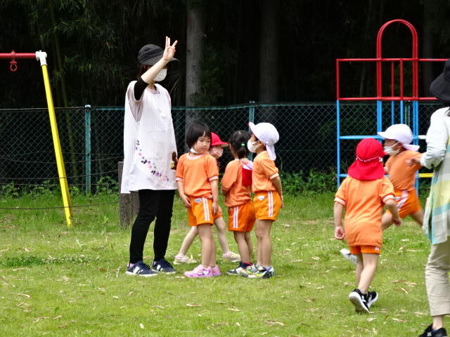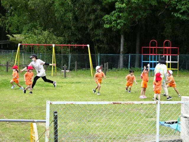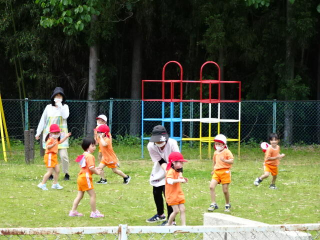 2022年6月13日 13時15分久しぶりに太陽が顔を出したので、年少児が外遊びをしました。