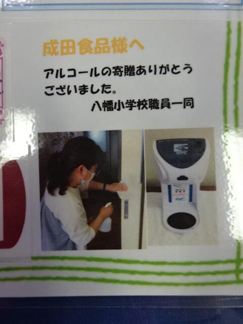 コロナ禍が継続する中、成田食品様から消毒用アルコールを寄贈していただきました。