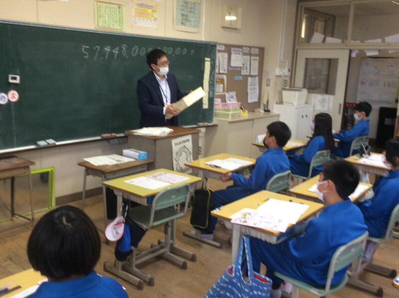 本日の6年生の租税教室の様子です。「わたしたちのくらしと税金とのかかわりを考えよう」というめあてで学習しました。代表児童が、実際に1億円のレプリカを持たせてもらいました。持った感想は?