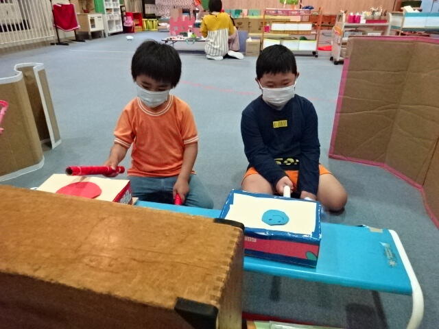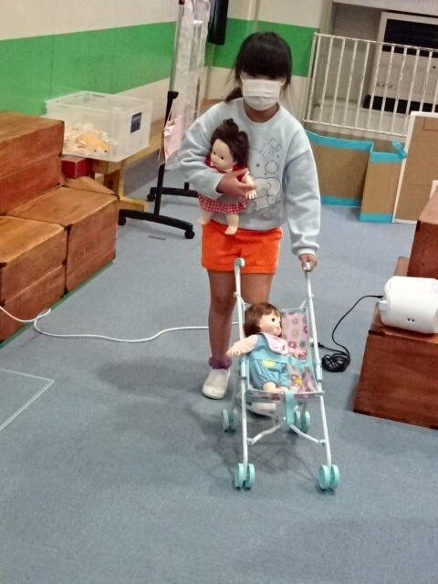 お互いの様子を観察しながら、学校ごっこ、太鼓演奏、散歩、運動などいろいろな遊びを体験しました。