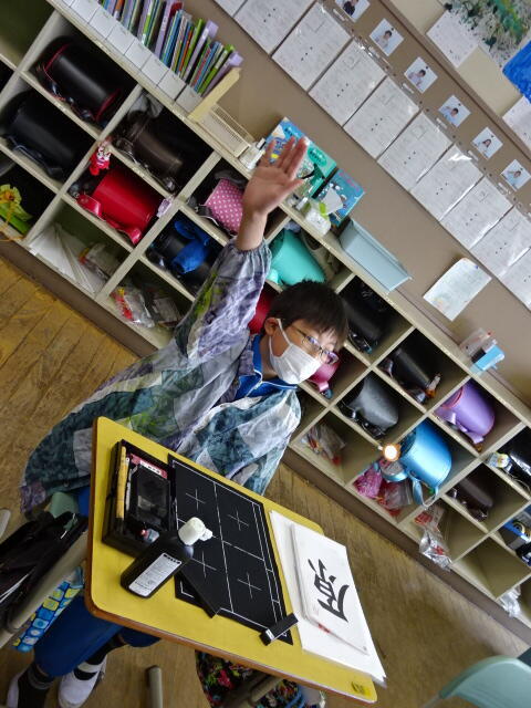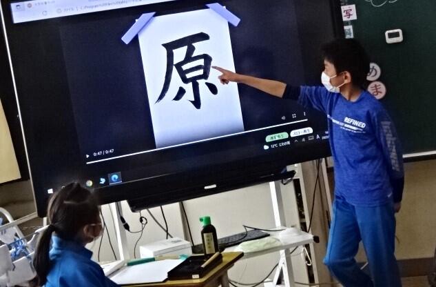 「原」を書くためのポイントをみんなで確認をした後、練習をしました。