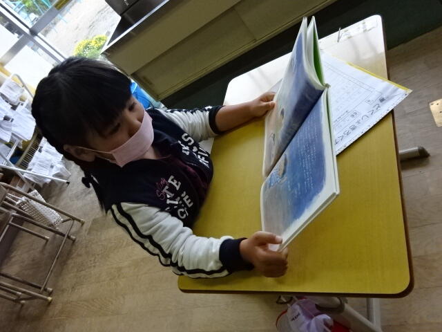 子どもたちは、学級の本棚から好きな本を選んで読みます。