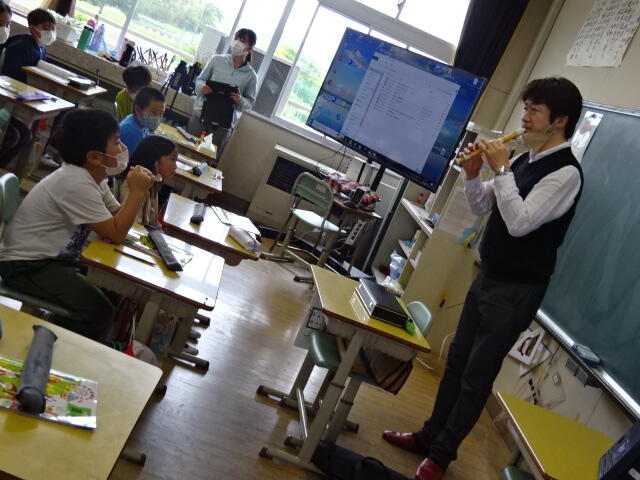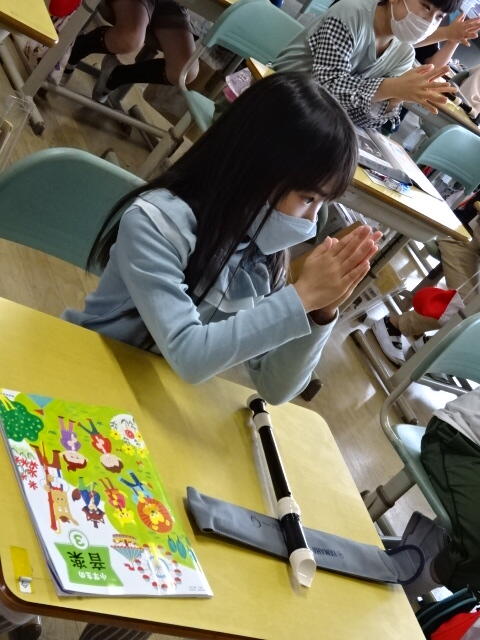 子どもたちは、先生が演奏するリコーダーの音色にうっとりした様子でした。