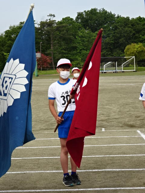 2022年6月1日 16時30分保護者の皆様に作っていただいた応援旗をもって、子どもたちも一生懸命応援をしました。