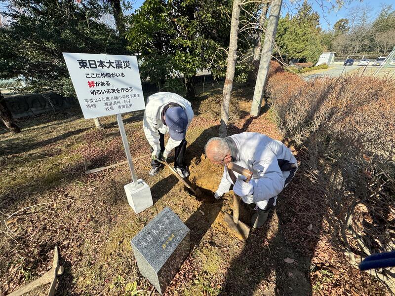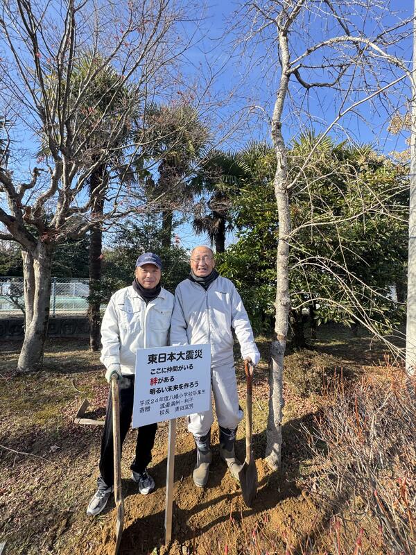 東日本大震災で被災された方々との絆を忘れずに、本校のシンボルであるしだれ桜を守ってまいります。
