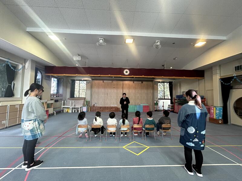 本日、幼稚園の多目的室で3学期始業式を行いました。