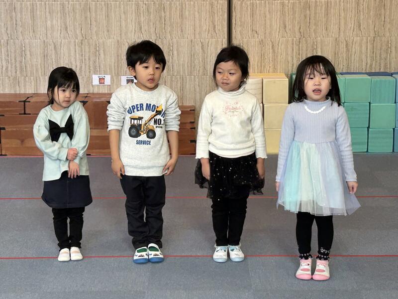 園長から2学期82日間の振り返りと頑張りのお話、養護教諭から冬休み15日間の過ごし方、園児の皆さんから2学期に頑張ったことの発表があり、最後に「お正月」を全員で歌って和やかに終わりました。