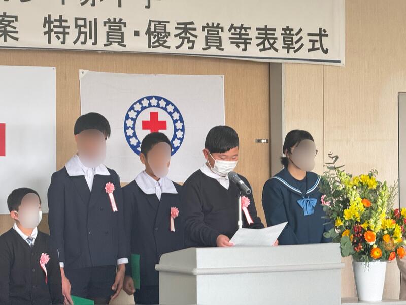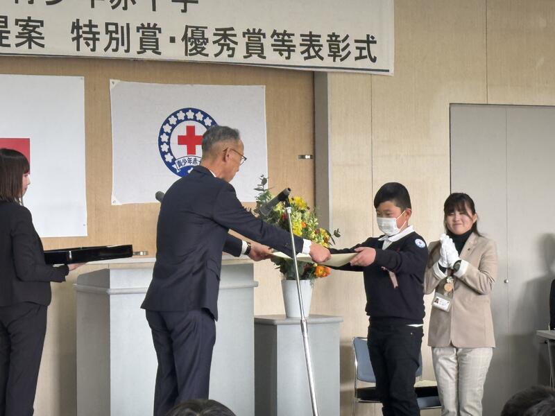 本校2年生児童が、県青少年赤十字 詩・100文字提案で特別賞に選ばれ、福島市にある県赤十字会館での受賞式に出席いたしました。